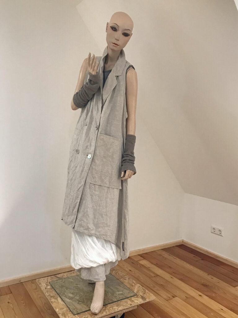 Lässige lange Weste mit klassischen Anleihen aus Leinen in hochwertiger Verarbeitung,